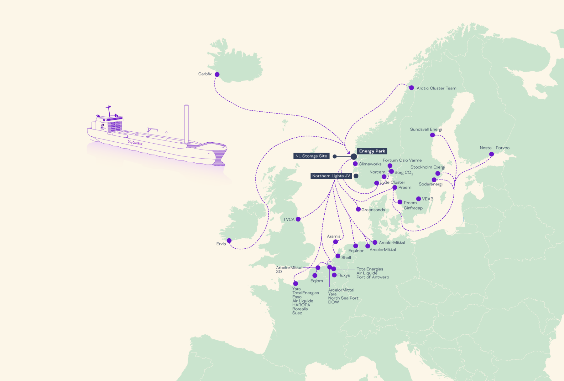 Northern Lights JV DA is developing an open and flexible infrastructure that will transport CO2 by ship from capture sites across Europe to a terminal in western Norway for intermediate storage, before transporting it by pipeline for permanent storage in a reservoir under the seabed. This infrastructure will enable the mitigation of industrial process emissions for which there is currently no scalable solution, accelerate the decarbonisation of European industry, and facilitate the removal of CO2 from the atmosphere.
